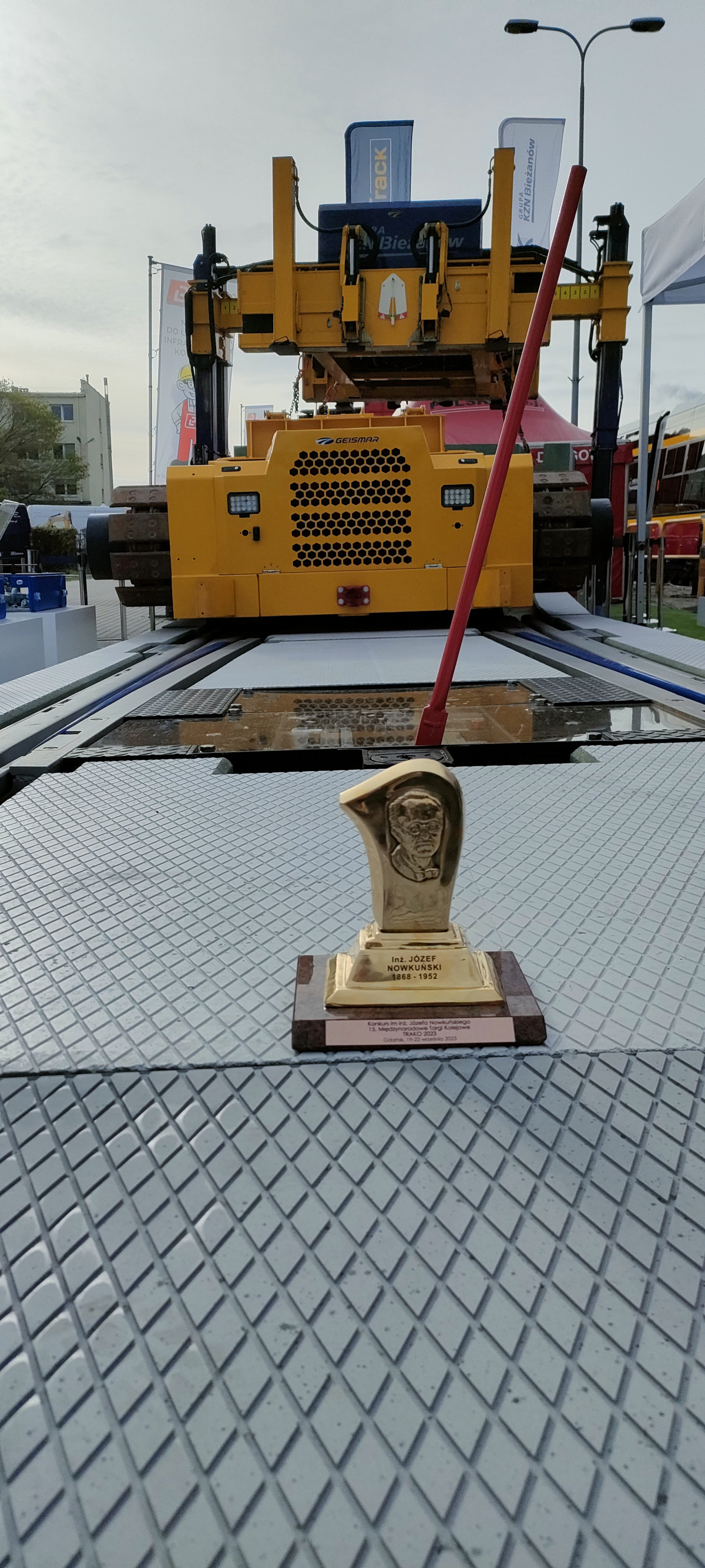 Innowacyjna technologia prefabrykacji rozjazdów, przejazdów, płyt łukowych i całych węzłów tramwajowych otrzymała nagrodę w konkursie im. Inż.Józefa Nowkuńskiego w trakcie TRAKO 2023. Ekspozycja na stanowisku zewnętrznym Grupy KZN Bieżanów, prezentująca prefabrykowany rozjazd tramwajowy, przyciągała tłumy zainteresowanych osób.